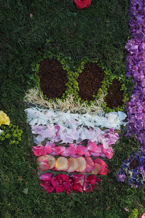 Ab 6 Uhr haben über 25 fleißige Personen die Blumenteppiche gelegt, es war eine beeindruckende Aktion.