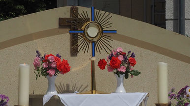 Es schloss sich eine Prozession durch die Stadt an, die zum Rathaus, dann zum Brunnen Ecke Bahnhofstraße/Pferdetränke, zum Feuerwehrgerätehaus der Freiwilligen Feuerwehr und zurück zur Dr.-Eckener-Straße führte. An vier Altären wurde in den Anliegen der Menschen gebetet und der eucharistische Segen gespendet.