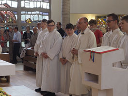 Zahlreiche Kommunionkinder waren ebenso dabei wie eine Bläsergruppe aus Borken und Gombeth, die den Gottesdienst musikalisch mitgestaltete. Die Schola Borken wirkte ebenfalls wieder mit. In der Predigt betonte Pfarrer Peter Göb unter Verweis auf das Evangelium, dass Christen die Menschen nicht wegschicken, sondern mit ihnen teilen.